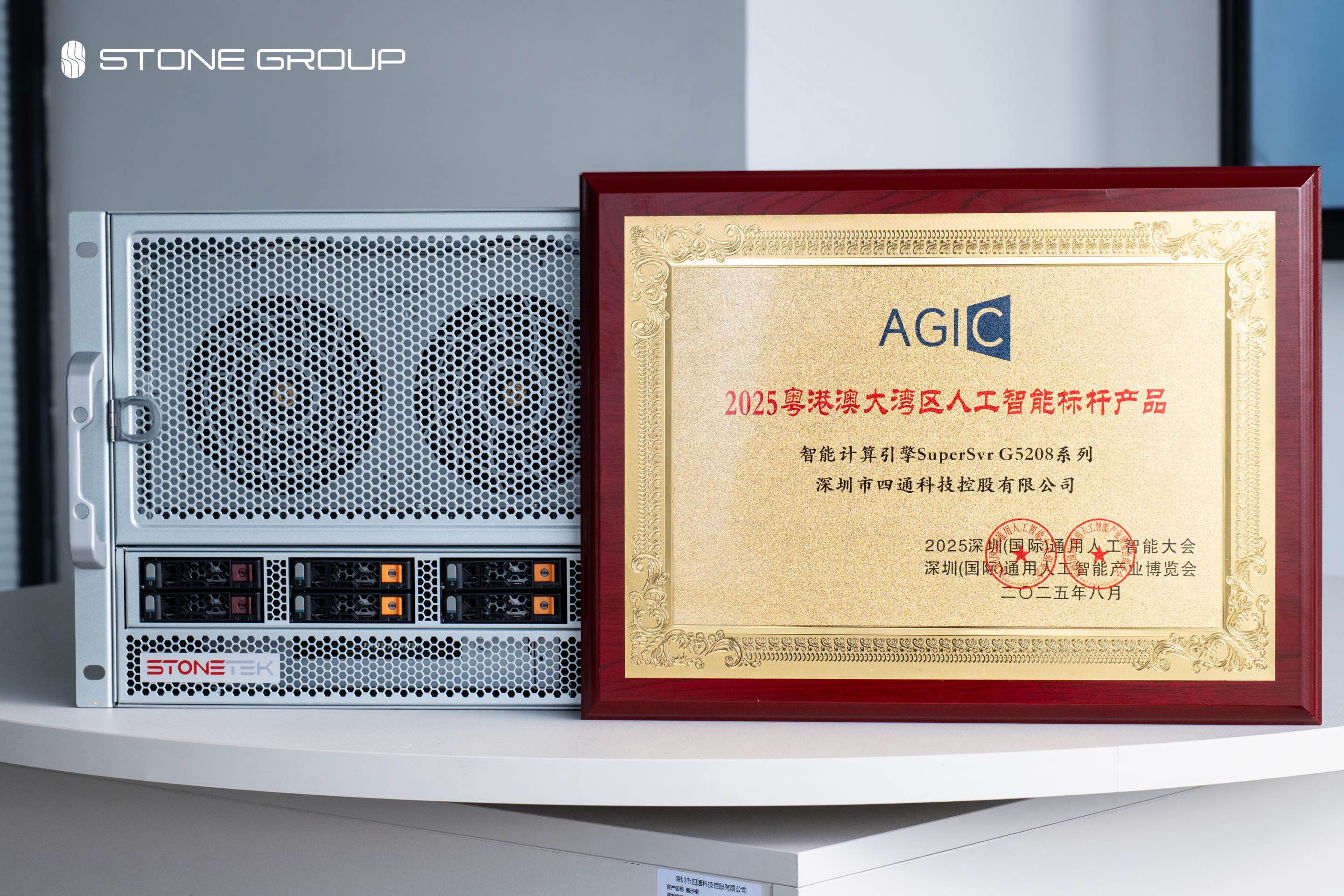 在人工智能引领全球创新、粤港澳大湾区加速建设国际科技创新中心的重要阶段,四通集团SuperSvr G5208系列产品荣获“2025粤港澳大湾区人工智能标杆产品”称号。这一成就体现了产品本身的技术领先性与应用深度,也展现出四通集团在推动人工智能产业高质量发展中所作出的扎实贡献。